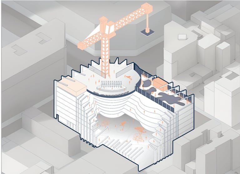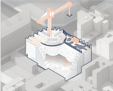 Midrise multipurpose apartment building in Barcelona, developed as a collaborative partner project, integrating residential, commercial, and communal spaces through a refined, contemporary design approach.